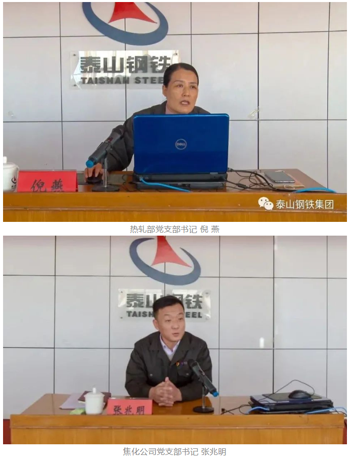 (学员代表:炼铁部党总支炼铁支部于义款、热轧部党支部张辉、冷轧部党支部李宁、不锈钢事业部党支部尚伟平、机关党总支第三党支部陈静、保卫部党支部胡长伟)