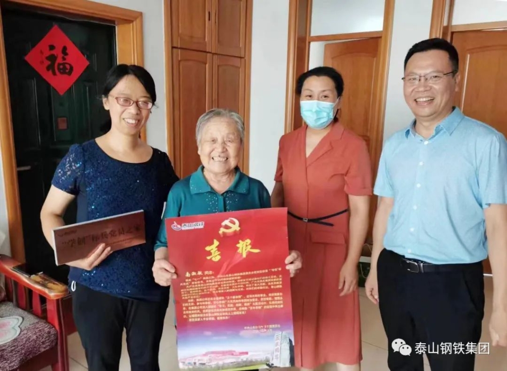 为进一步加强党建工作,切实树立和提升党员的荣誉感和自豪感。近日,泰山钢铁集团各党支部带着党委王书记的亲切嘱托,为七一期间评选出的优秀共产党员、“学创”标兵党员送去了门牌、喜报,让党员们切实感受到了组织的关怀,增强了党员的归属感,强化了组织的凝聚力,激发了党建的内生动力。