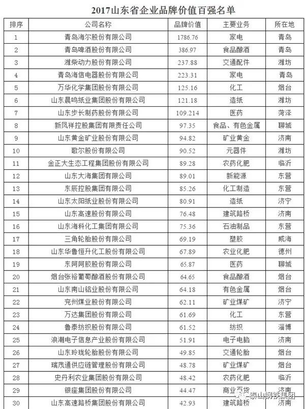 据介绍,2017山东省企业品牌价值百强总价值达到5897.21亿元,平均每个上榜品牌的价值为58.97亿元,比2016山东省企业品牌价值百强总价值4720.47亿元,平均每个上榜品牌的价值为47.20亿元,均上升24.93%。上榜门槛由去年的5.74亿元提高到8.56亿元。集团公司以36.78亿元位列第36位,在我市成功入选单位中一马当先。