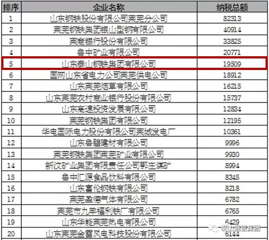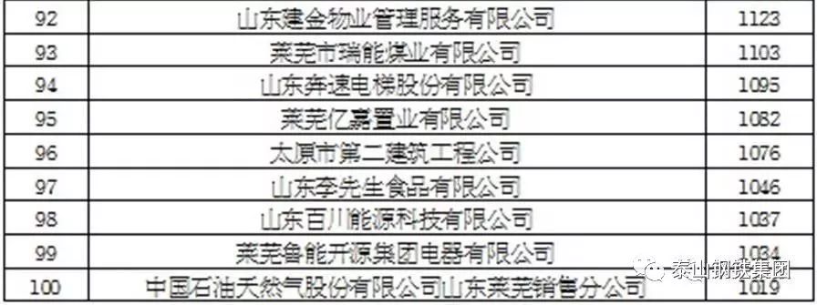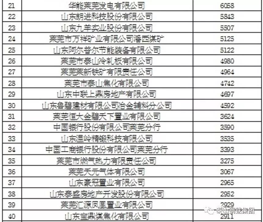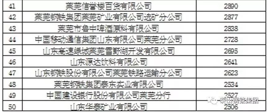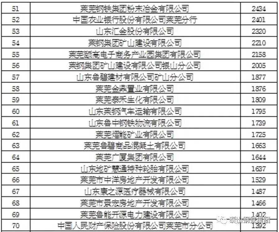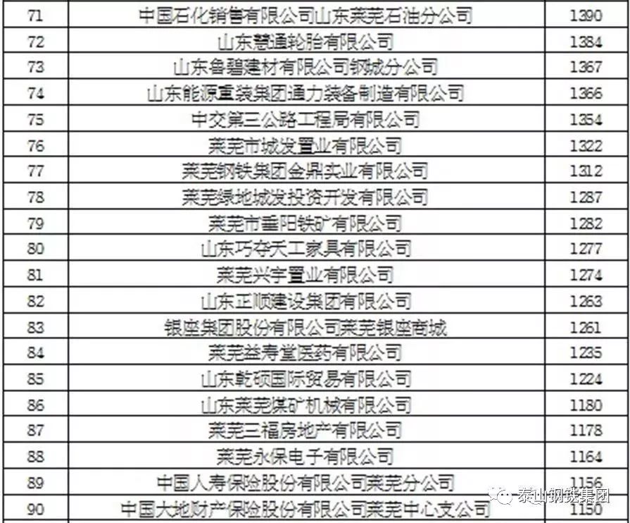 莱芜市2017年度纳税百强企业排行榜(单位 万元)
