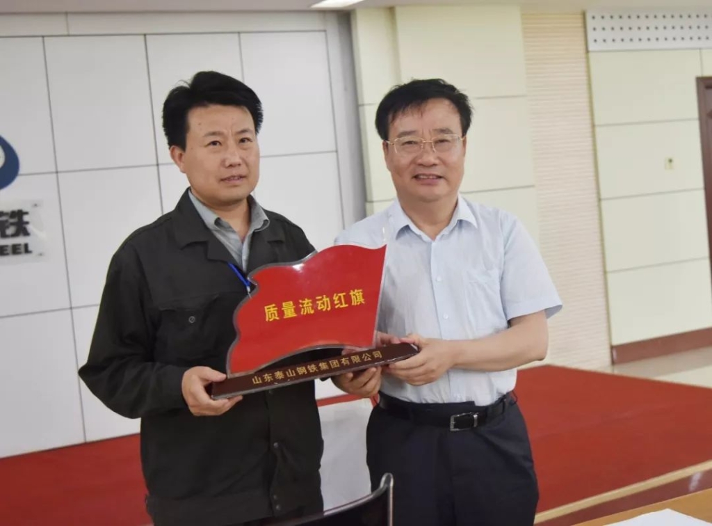 会上,王董事长还为质量工作先进单位不锈钢炼钢厂颁发“质量流动红旗”,为品保部授书。