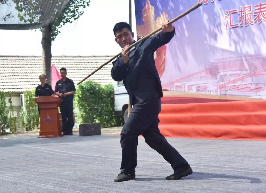 感谢我们保卫队员的精彩表演,下面请高太刚同志代表全体保卫部队员发起《不忘初心、牢记使命,建设泰山钢铁保卫强师》的倡议宣言。