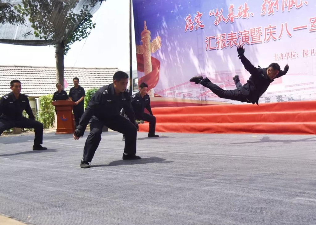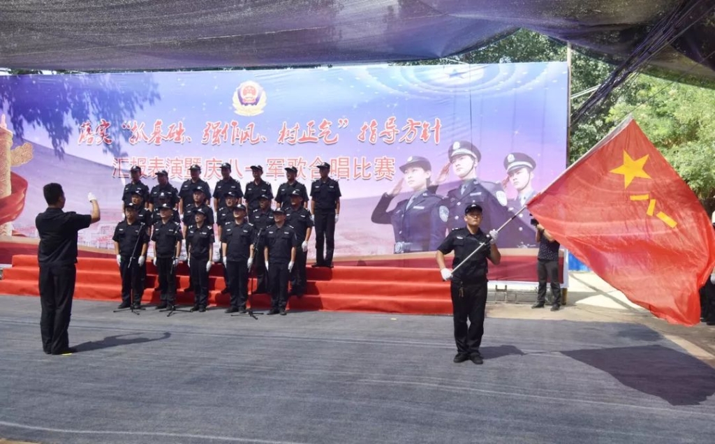 8月1日,泰山钢铁集团保卫部落实“抓基础、强作风、树正气”指导方针汇报表演暨庆八一军歌合唱比赛在警企联动中心广场举行,董事长、党委书记、总裁王永胜观看演出并发表重要讲话。
