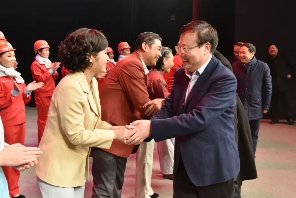 1月17日19时,由莱芜梆子剧团以泰山钢铁集团创始人、已故老书记为原型创作的《我喜欢大伙叫我书记》演艺剧,在莱芜梆子剧团举行首演式,董事长、党委书记、总裁王永胜观看了精彩的演出。