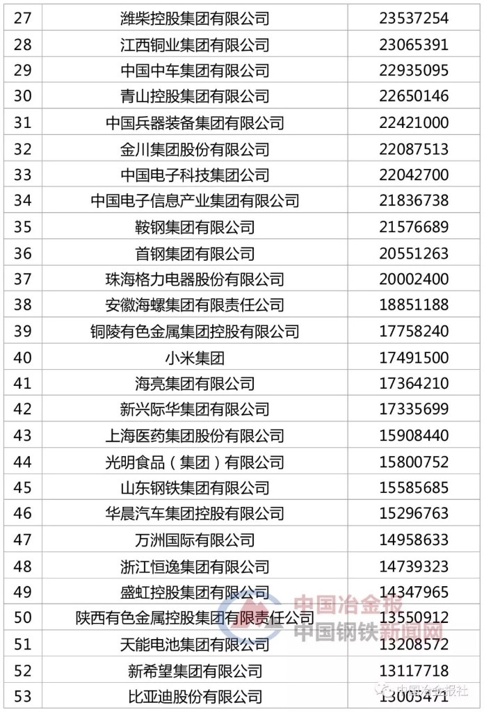 同日,中国企业联合会、中国企业家协会还发布了2019中国制造业企业500强名单,