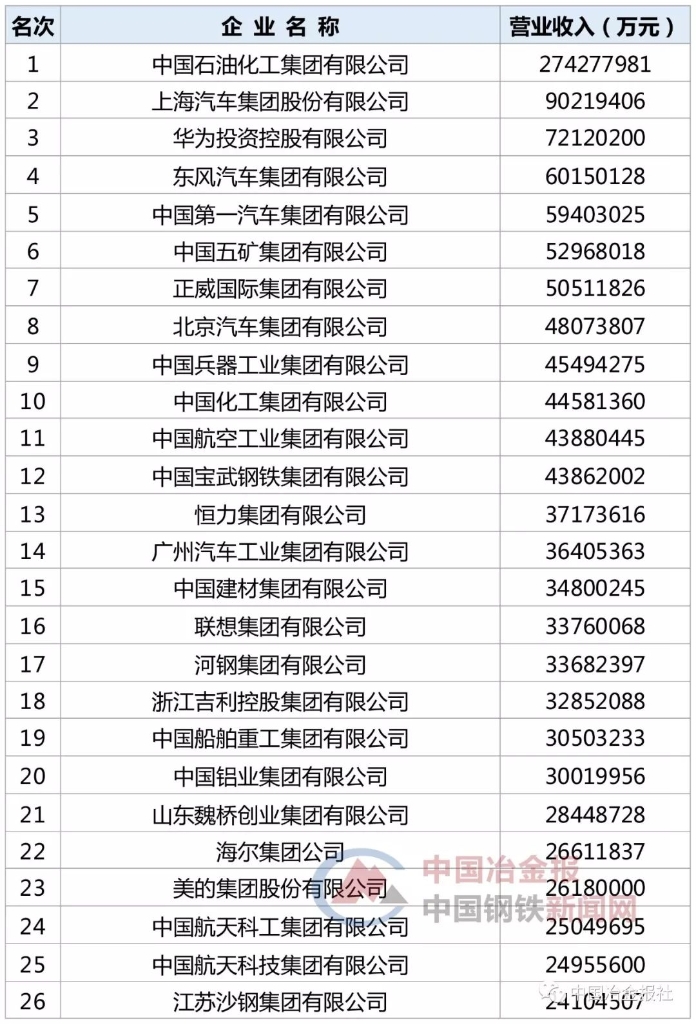 9月1日,由中国企业联合会、中国企业家协会连续第18次向社会公开发布的“中国企业500强名单”排行榜揭晓。