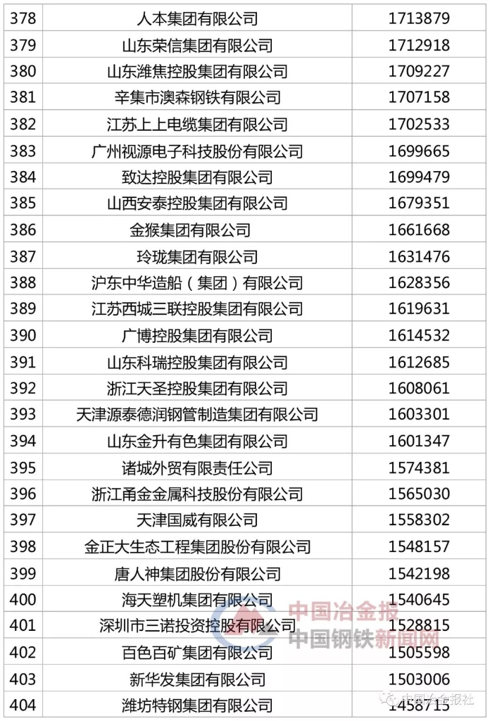 【快讯】2019中国企业500强名单发布,泰山钢铁集团再入榜单