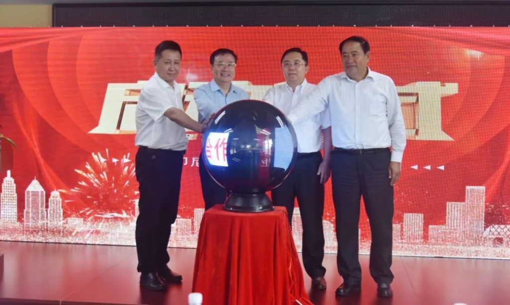 在热烈的掌声中,王董事长和邢路正董事长、刘云刚、高振民共同宣布青岛印尼综合产业园镍电合作项目启动。