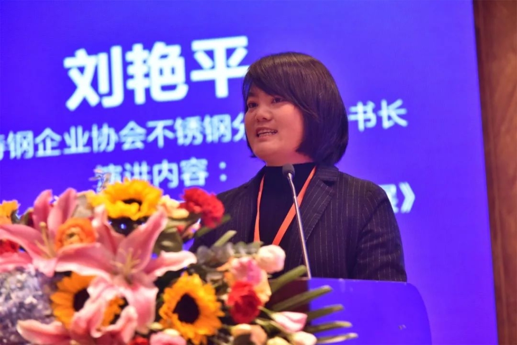 中国特钢企业协会不锈钢分会秘书长刘艳平作题为《努力推动山东不锈钢产业高质量发展》的演讲。