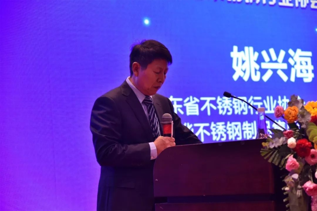 在主题大会第二阶段,山东华烨不锈钢制品集团有限公司董事长姚兴海首先致辞。