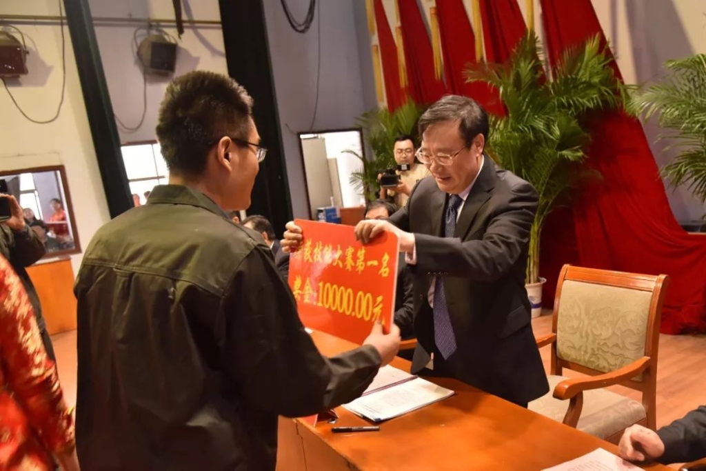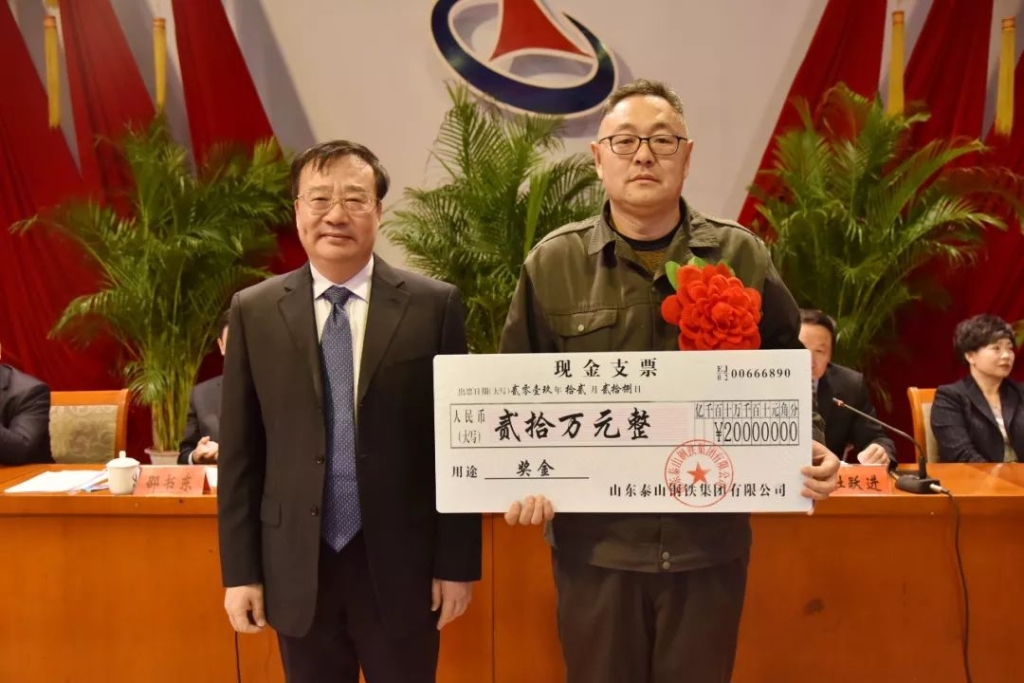 王董事长为优秀管理代表宓安孔同志颁发20万元现金奖励
