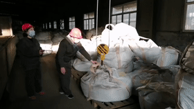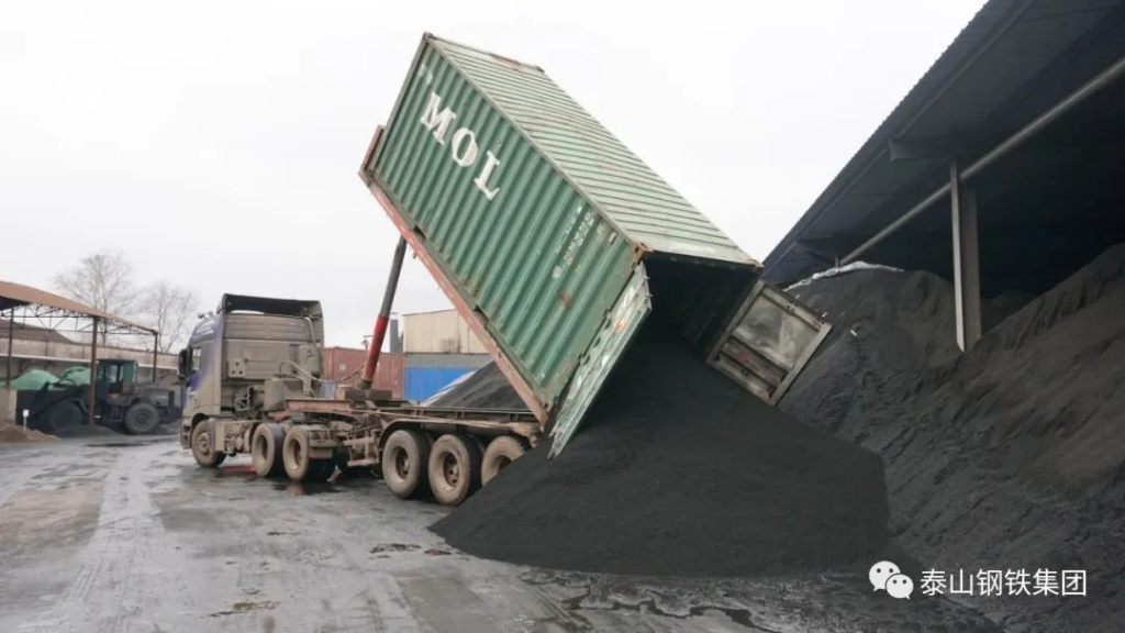 (通过集装箱到达的兰炭在新材料进行卸货)