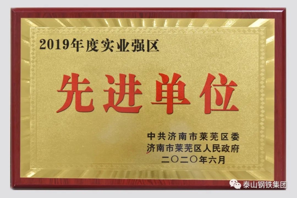 集团获得了“2019年度实业强区先进单位”、“优秀贡献企业”、“优秀科技创新企业”等荣誉,泰嘉不锈钢冷轧板材深加工项目获得“十大优秀项目”二等奖。