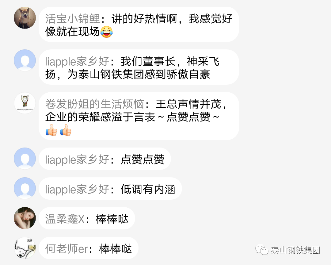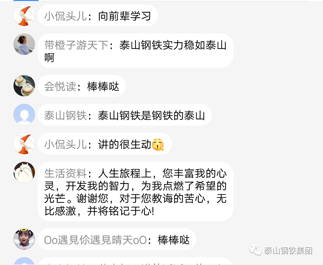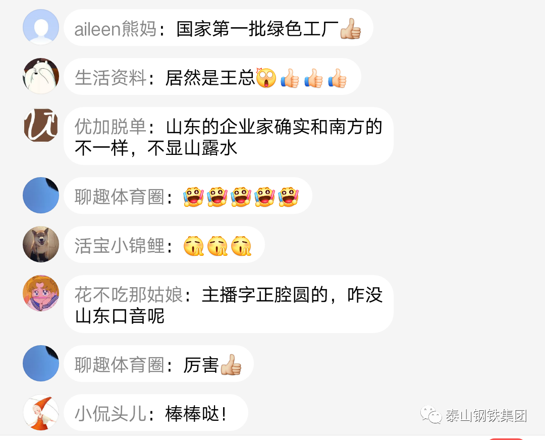 此次直播历时1小时,吸引了11.6万人次点击观看,众多网友纷纷点赞留言。泰山钢铁集团各单位也自发地组织职工进行了观看、学习。王董事长的讲座精神饱满、慷慨激昂,获得了首讲的圆满成功,进一步展示了新时代济南工业的新风貌,塑造了济南制造业的新形象,也进一步提升了泰山钢铁集团的影响力和美誉度,让更多的人了解欧宝app登录入口-欧宝(中国)、关注欧宝app登录入口-欧宝(中国)。素材提供:张倩 苏海滨