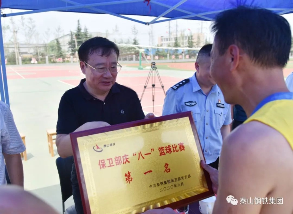 上午10时30分,王董事长来到汶水学校。在篮球场上,精神饱满、英姿飒爽的保卫队员们整齐列队,他们身后,悬挂着“保卫部庆八一篮球比赛”的红色条幅。今天,保卫部将在这里举行庆“八一”篮球比赛决赛。