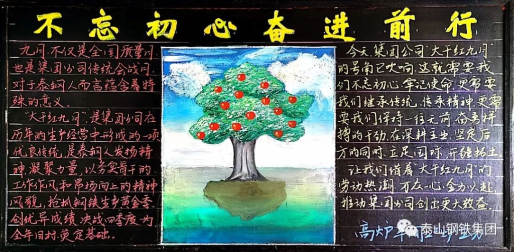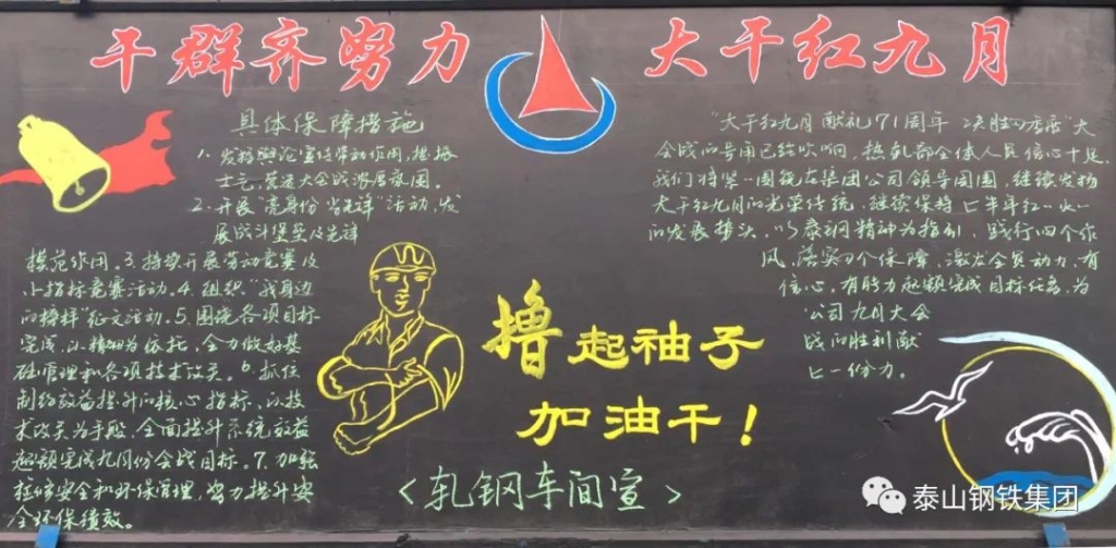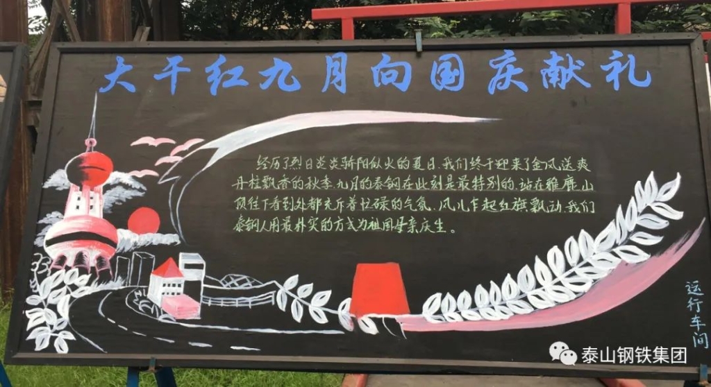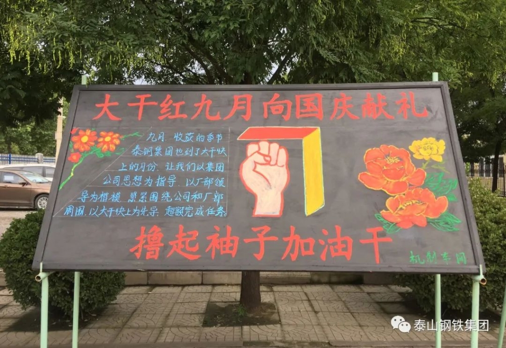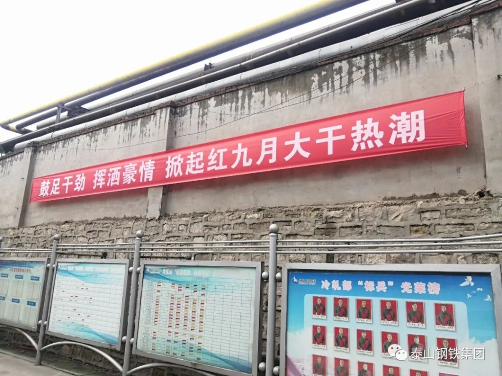 进入2020年,欧宝app登录入口-欧宝(中国)人紧密团结在泰山钢铁集团党委和董事局周围,团结一心战胜各种困难,一路高歌猛进,取得了优异成绩,呈现出你追我赶、争先恐后、大干快上、蒸蒸日上的好势头。进入九月份,为继续发扬大干红九月的光荣传统,继续保持上半年红红火火的发展势头,号召全体干部职工进一步昂扬斗志、热忱工作,比质量、比效益、比管理、比干劲,以优异的成绩向国庆71周年献礼。经泰山钢铁集团公司党委和董事局研究,决定在全公司开展“大干红九月 献礼71周年 决胜四季度”主题活动。进入欧宝app登录入口-欧宝(中国)“九月”的第一天,各单位积极开展宣传行动,通过悬挂条幅、黑板报等形式,表达大干红九月的坚定信心和决心。