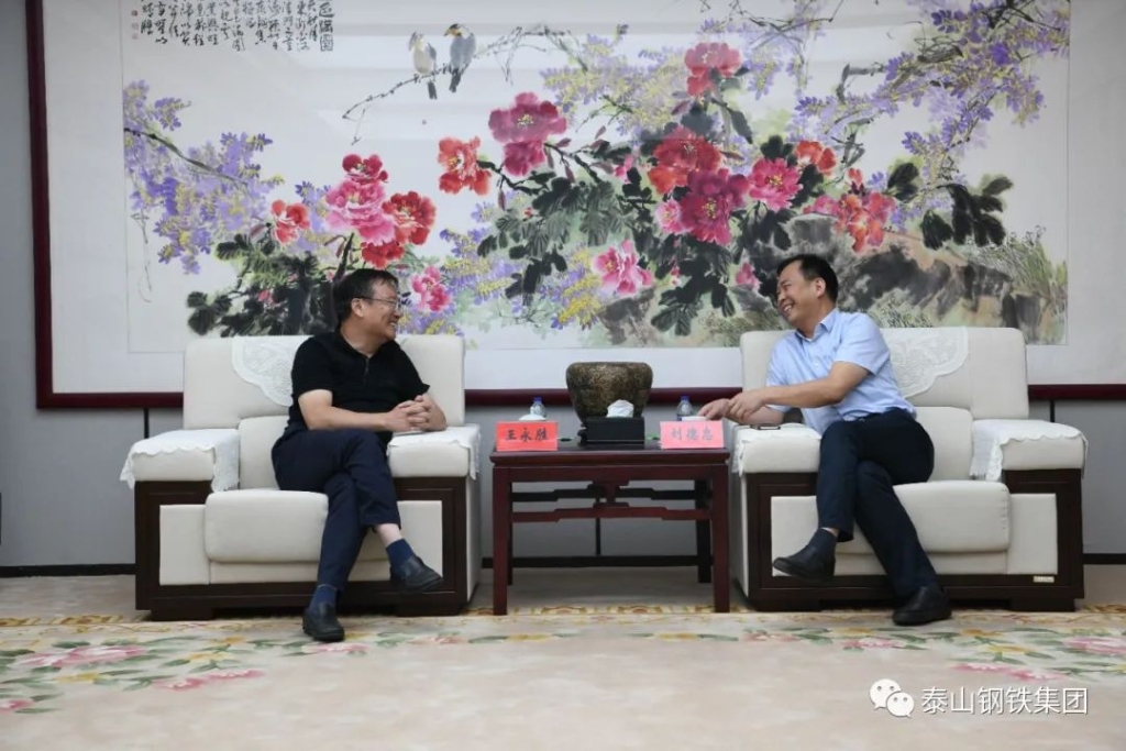 9月4日,泰山钢铁集团董事长、党委书记、总裁王永胜在办公楼贵宾室热情接待了鲁中矿业有限公司总经理、党委副书记刘德忠一行。双方对钢铁、煤炭行业的未来发展趋势交换了意见。