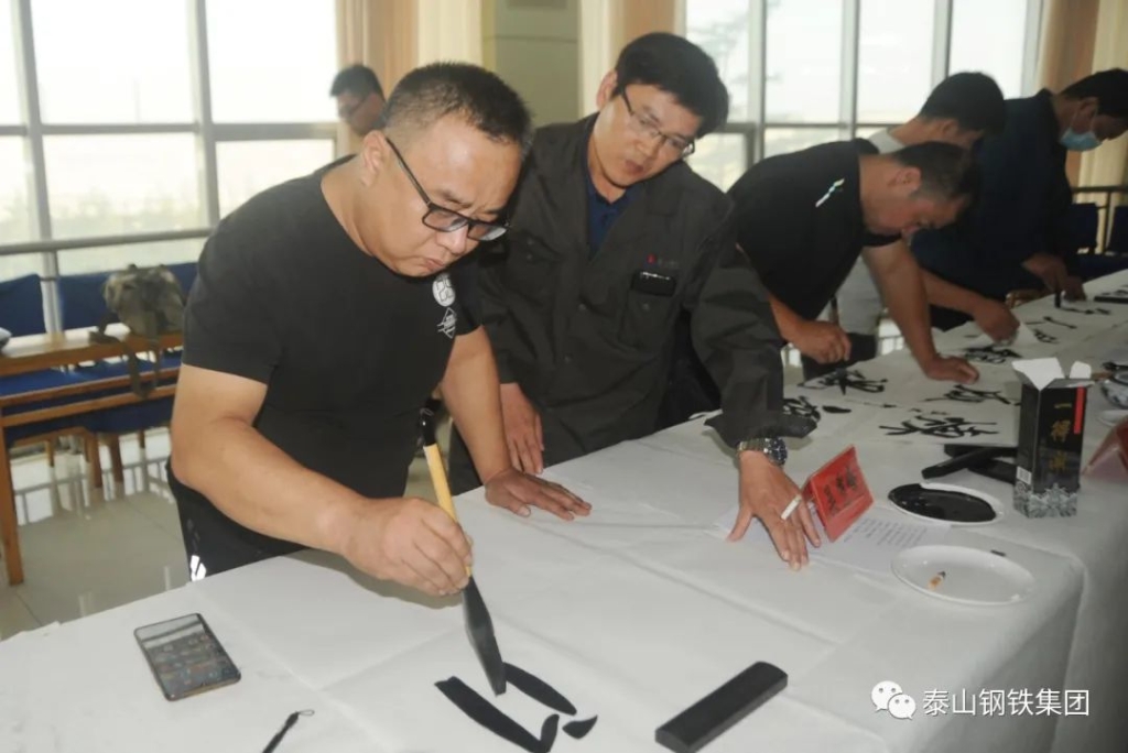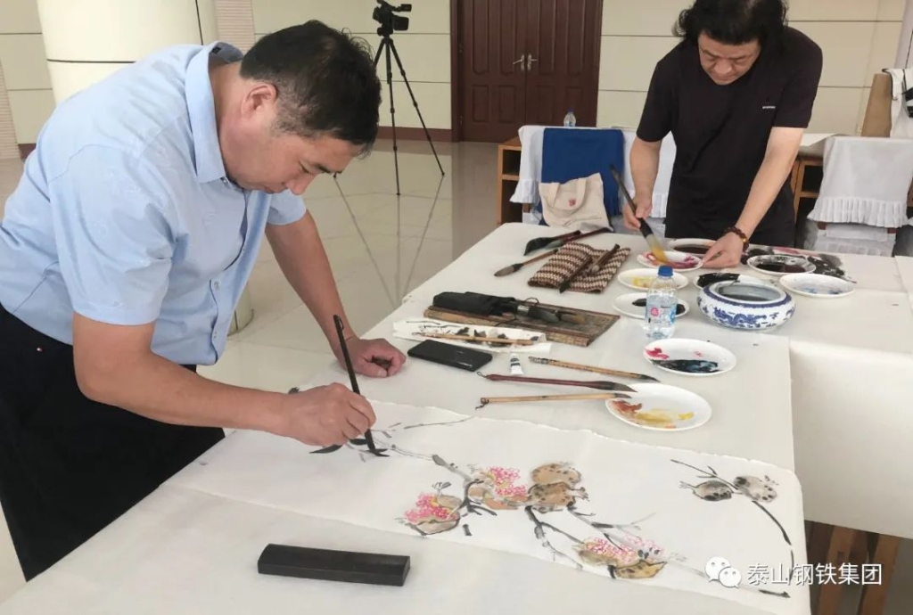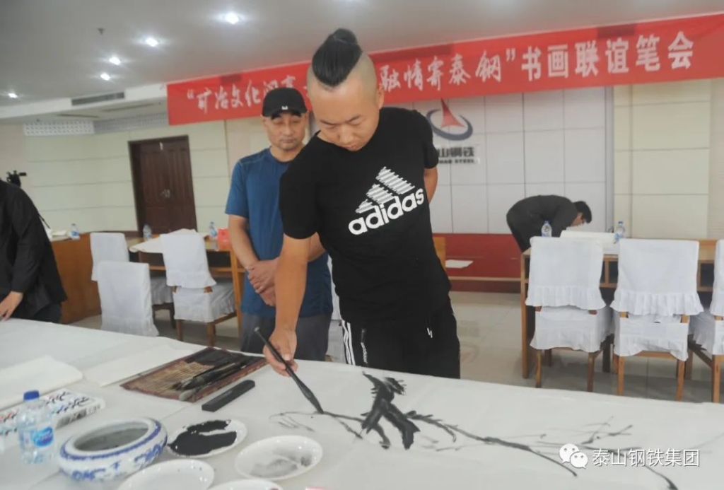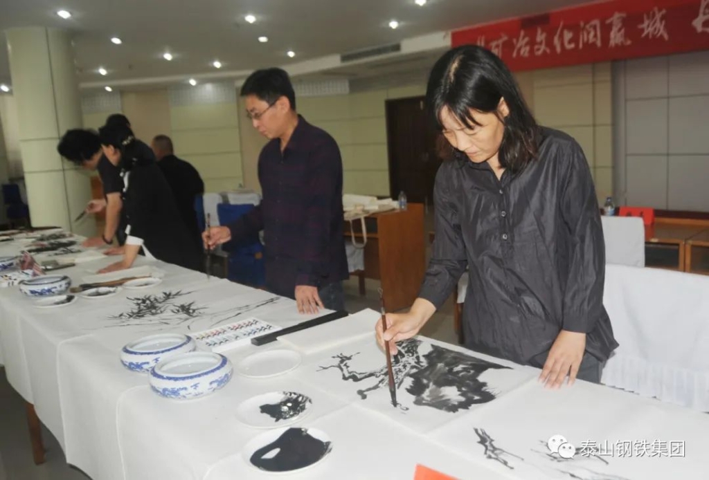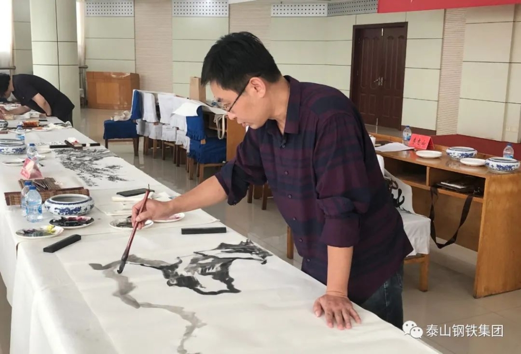 (莱芜区书法家协会、美术家协会的书画家们现场泼墨)