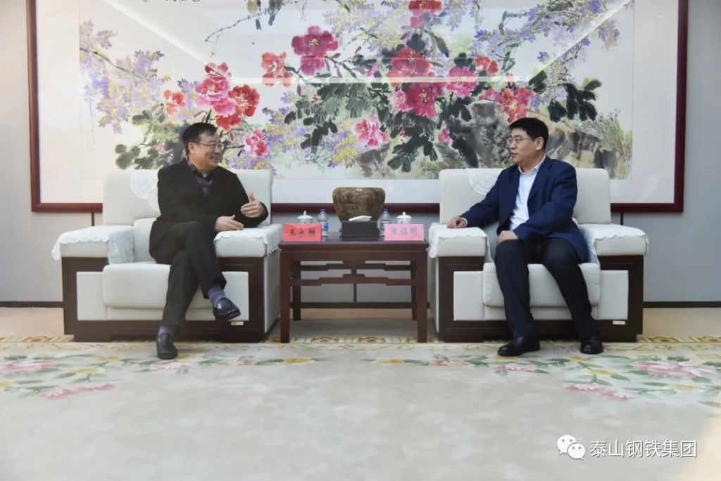 12月4日,泰山钢铁集团董事长、党委书记、总裁王永胜在办公楼贵宾室接待了首钢集团副总工程师张福明一行,双方探讨交流了炼铁工艺技术。