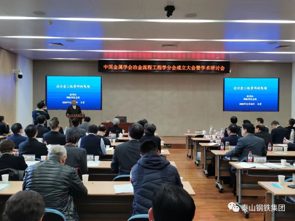 12月20日,泰山钢铁集团董事长、党委书记、总裁王永胜受殷瑞钰院士邀请,在北京科技大学参加了中国金属学会冶金流程工程学分会成立大会暨学术研讨会。来自钢铁冶金行业的七位工程院士,中国金属学会、中国钢铁工业协会、钢研总院、冶金规划院的专家学者,以及部分钢企代表参加成立大会。