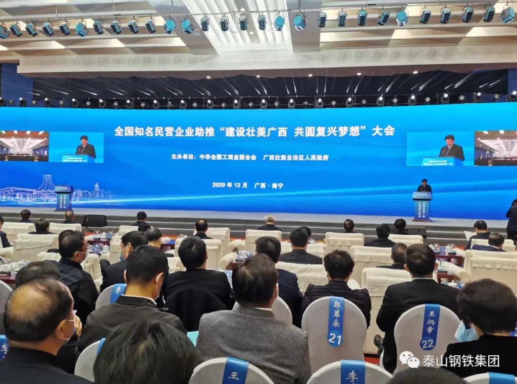 12月21日-22日,全国工商联十二届四次执委会议在广西南宁隆重召开。21日上午,会议召开了第一次全体会议,全国政协副主席、全国工商联主席高云龙向大会作工作报告,中央统战部副部长、全国工商联党组书记、常务副主席徐乐江主持大会。全国工商联执委、泰山钢铁集团董事长、党委书记、总裁王永胜参加会议。