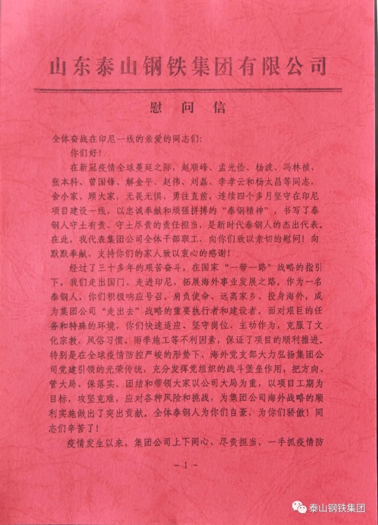 去印尼工作的同志大都是第一次出国,并且也是第一次在国外工作这么长的时间。去印尼之前,集团公司就组织人员进行了相关的培训,包括尊重宗教信仰以在印尼工作的注意事项,为在印尼顺利开展工作奠定了一个良好的基础。在这期间,为了让他们安心工作,没有后顾之忧,每逢节假日,王董事长都会与他们联系,问询大家的身体情况和工作生活状况。特别是疫情爆发蔓延后,王董事长更是时刻挂念着他们,多次嘱咐赵顺峰一定要带领大家做好防护、确保安全第一。在给他们的慰问信中,王董事长说:“作为一名欧宝app登录入口-欧宝(中国)人,你们积极响应号召,肩负使命、远离家乡、投身海外,成为集团公司“走出去”战略的重要执行者和建设者。面对艰巨的任务和特殊的环境,你们快速适应、坚守岗位、主动作为,克服了文化宗教、风俗习惯、雨季施工等不利因素,保证了项目的顺利推进。特别是在全球疫情防控严峻的形势下,海外党支部大力弘扬集团公司党建引领的光荣传统,充分发挥党组织的战斗堡垒作用,把方向、管大局、保落实,团结和带领大家以公司大局为重,以项目工期为目标,攻坚克难,应对各种风险和挑战,为集团公司海外战略的顺利实施做出了突出贡献。全体欧宝app登录入口-欧宝(中国)人为你们自豪,为你们骄傲!同志们辛苦了! ”