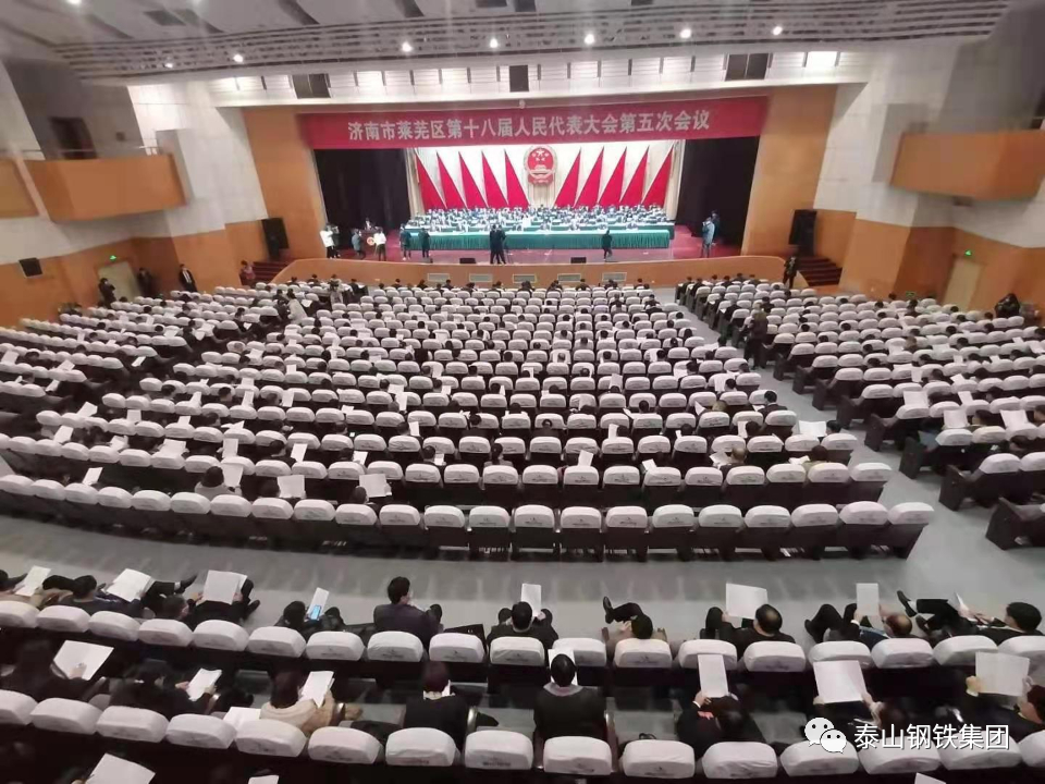 省人大代表、市人大常委、泰山钢铁集团党委书记、董事长、总裁王永胜在主席台就坐,与来自全区各行各业、各条战线的人大代表,肩负全区人民的重托,汇聚一堂,共商发展大计。