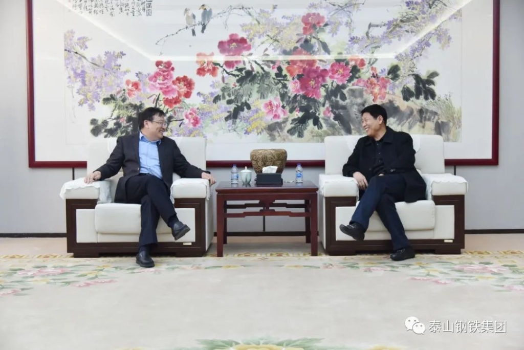 2月7日,泰山钢铁集团董事长、党委书记、总裁王永胜在办公楼贵宾室会见了山东华烨不锈钢制品集团有限公司董事长姚兴海一行,并就下一步发展合作进行了洽谈。
