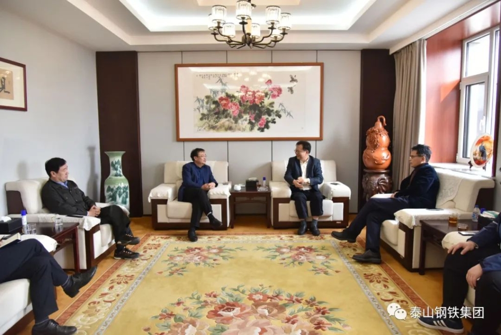 3月8日,山东省不锈钢行业协会会长、泰山钢铁集团董事长、党委书记、总裁 王永胜在办公楼贵宾室会见了佛山市金属材料行业协会执行会长李强,双方共同探 讨了未来不锈钢产业发展趋势和不锈钢产品应用。集团党委成员、总监邵书东,总监陈培敦、李海洋参加座谈。