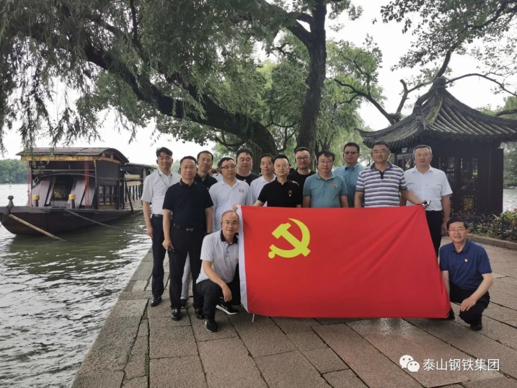 在庄严肃穆的党旗前,党员学员们重温入党誓词,表达了不忘初心、牢记使命的信念和决心。泰山钢铁集团党委书记董事长王永胜领誓。