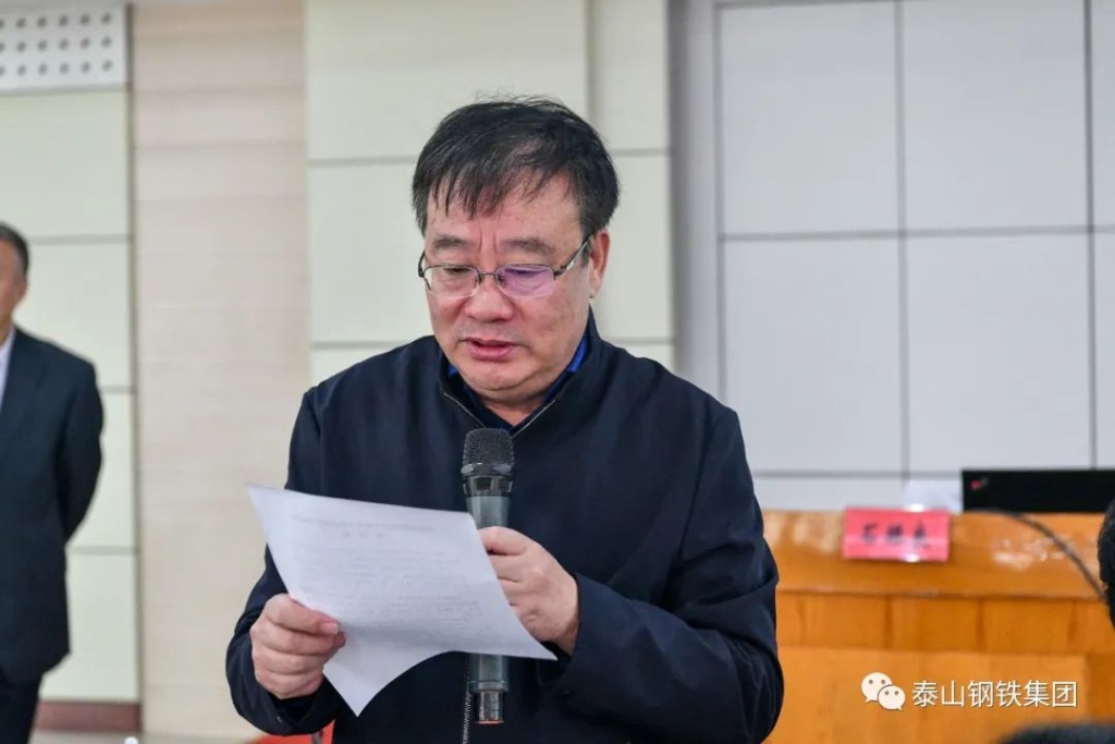 10月16日,泰山钢铁集团中高层干部营销管理研修在经贸楼会议室举行,集团党委书记、董事长、总裁王永胜致开场词。集团党委成员、总监邵书东,总监郑红君、李海洋,总经理助理王晓林、魏述亮参加活动。
