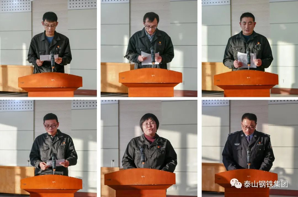 (学员代表:炼铁部党总支炼铁支部于义款、热轧部党支部张辉、冷轧部党支部李宁、不锈钢事业部党支部尚伟平、机关党总支第三党支部陈静、保卫部党支部胡长伟)