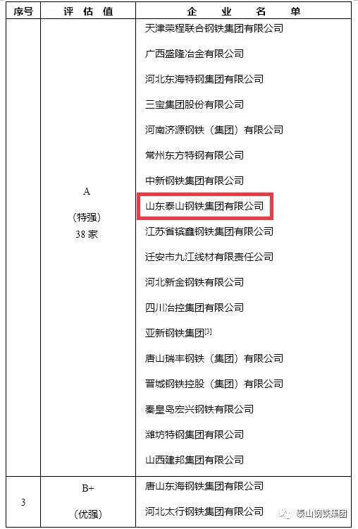 喜报|泰山钢铁集团获评A级(竞争力特强)企业等荣誉称号