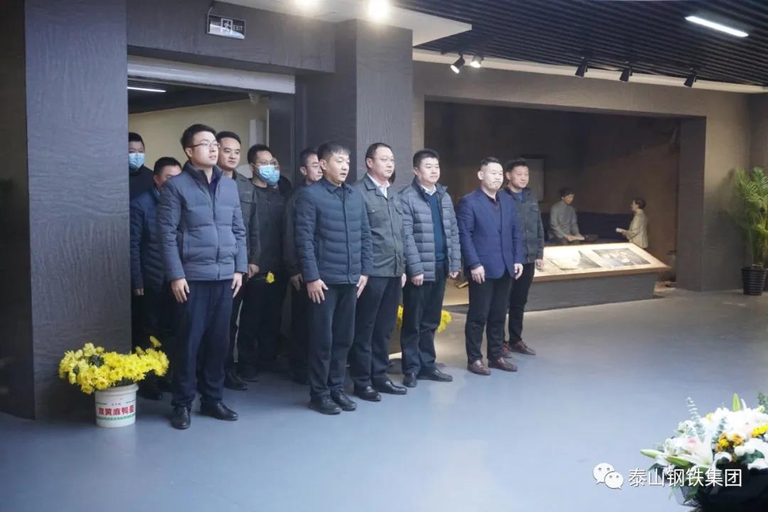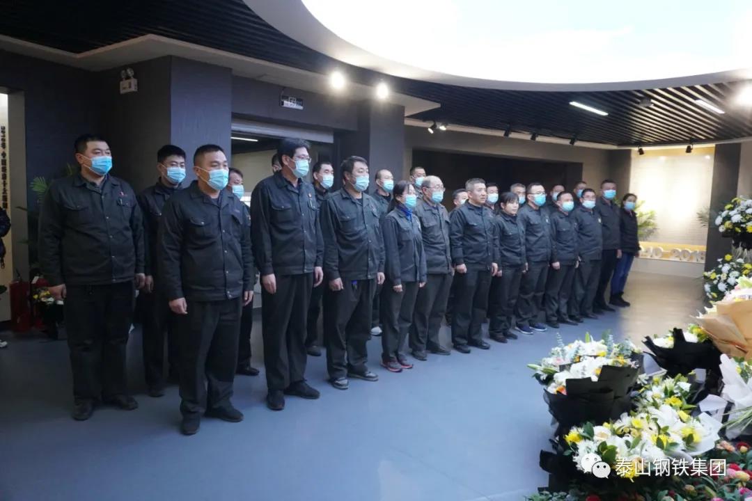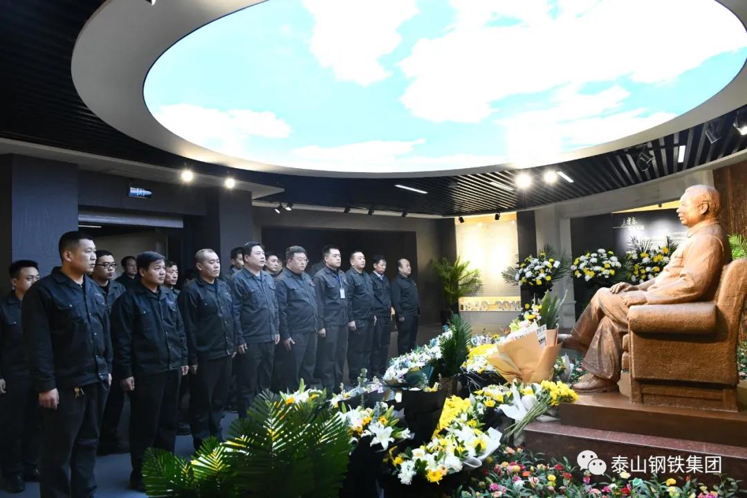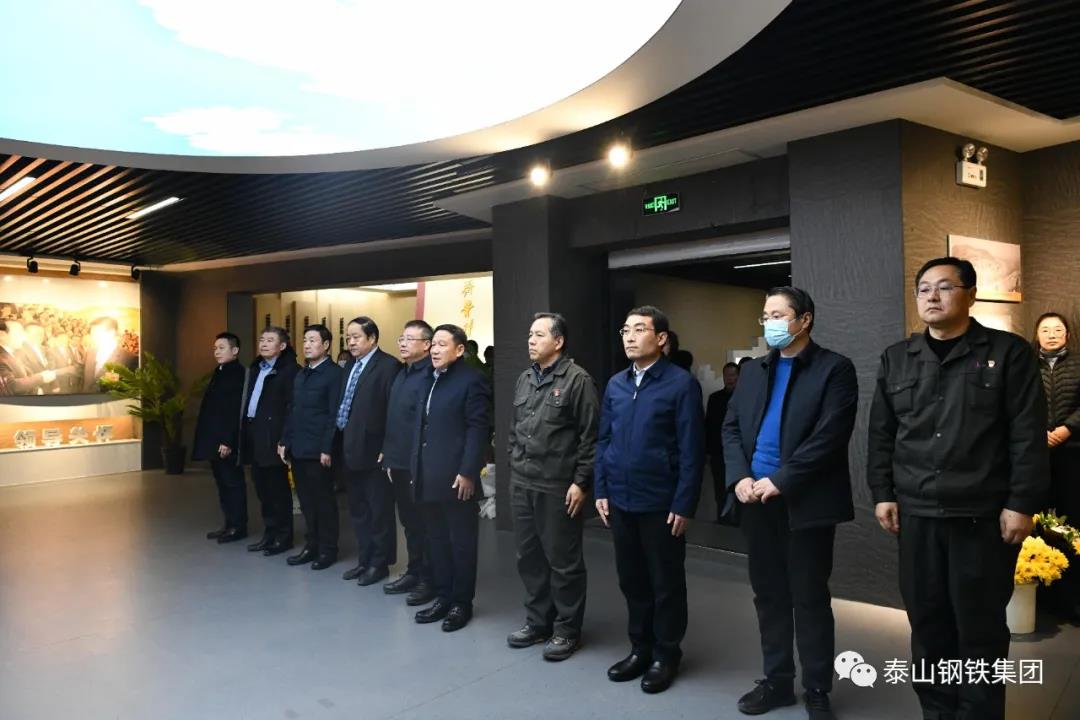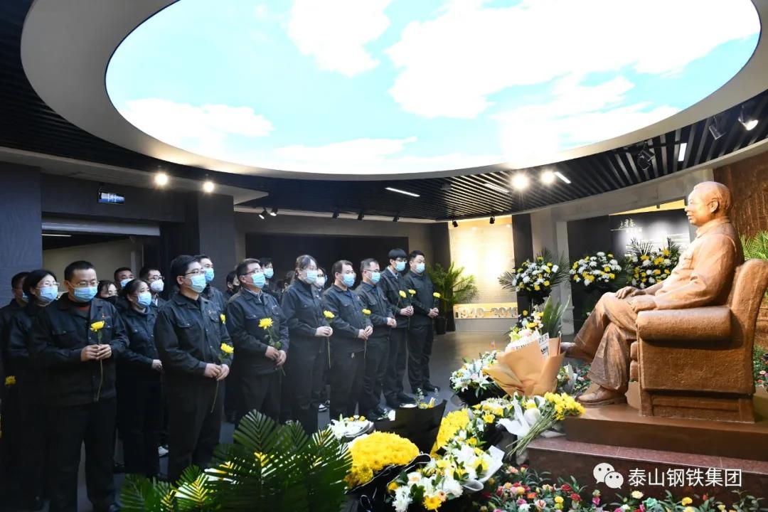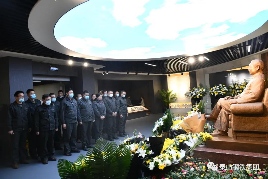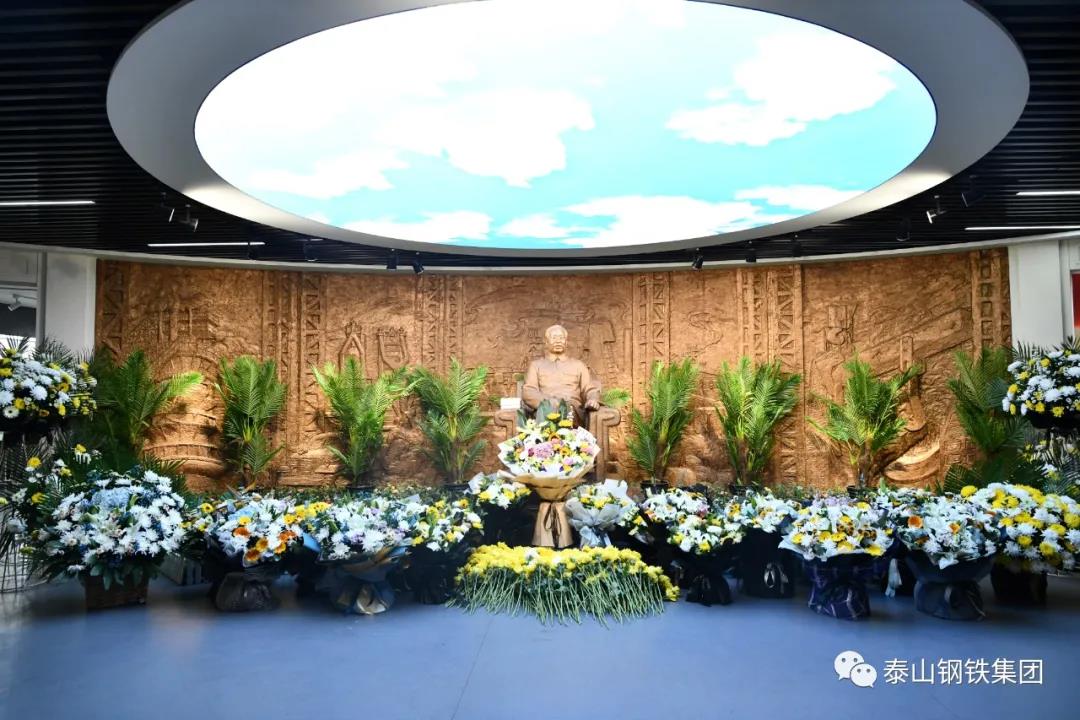 2022年1月1日上午9时,泰山钢铁集团党委书记、董事长、总裁王永胜带领在家公司领导一起拾级而上,缓步走进庄严肃穆的老书记纪念馆,向老书记雕像敬献鲜花。鲜艳挺拔的花烛、芬芳吐蕊的百合、轻盈绽放的文心兰,寄托着对已故老书记王守东同志的深切缅怀和崇高敬意。