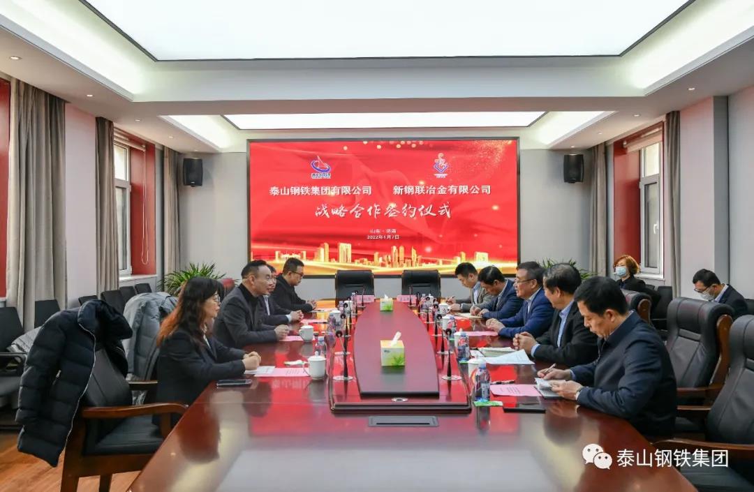 1月7日,泰山钢铁集团与新钢联冶金有限公司在办公楼会议室举行战略合作签约仪式。集团党委书记、董事长、总裁王永胜,新钢联冶金有限公司董事长周旭东等领导出席仪式。集团党委成员、总工程师高振民主持仪式。