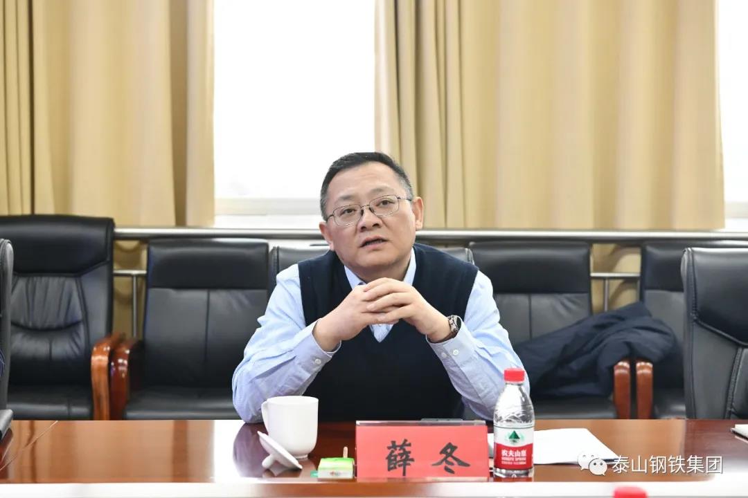 2月10日,中国银行山东省分行党委委员、副行长薛冬在莱芜分行党委书记、行长毕晓鹏陪同下来泰山钢铁集团调研。集团党委书记、董事长、总裁王永胜热情接待薛冬一行。在经贸楼多媒体会议室,双方围绕银企合作进行了交流。