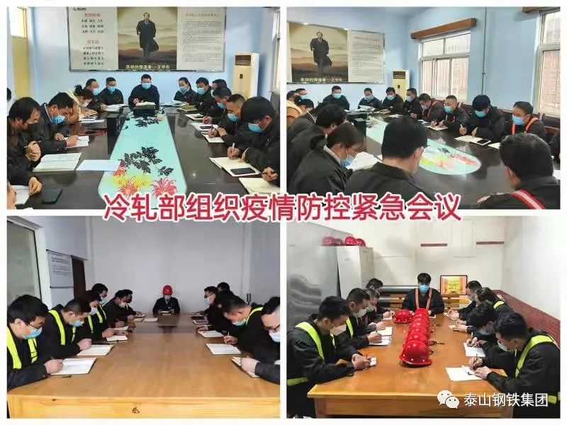 3月14日,泰山钢铁集团董事长、党委书记、总裁王永胜作出了“疫情严重,各单位要切实做好职工的疫情防控,切不可掉以轻心”的要求。3月15日,王董事长对疫情防控工作再部署。王董事长强调,当前,国内省内多地出现疫情反弹,疫情防控形势更加严峻复杂,各单位要高度警惕、严防严控,毫不松懈抓好疫情防控和安全生产。根据防疫工作部署,泰山钢铁集团各单位迅速行动,全力做好防疫工作。第一时间召开防疫工作调度会,并成立专项防控小组: