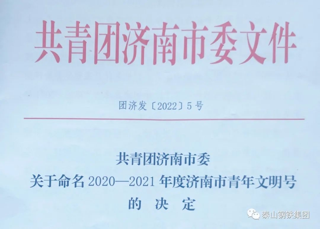 为选树典型、表扬先进,共青团济南市委下发了《关于命名2020——2021年度济南市青年文明号的决定》,授予符合创建条件且表现突出的137个创建集体为“2020—2021 年度济南市青年文明号”,泰山钢铁集团炼铁部炼铁厂电工班榜上有名。
