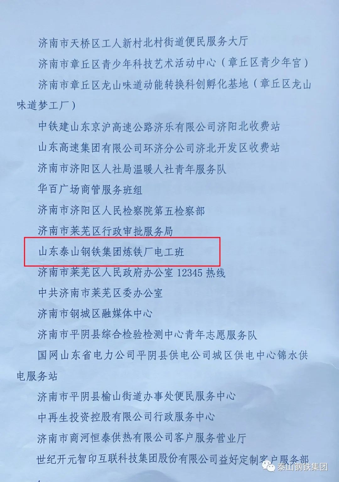 祝贺!泰山钢铁集团炼铁厂电工班获评“济南市青年文明号”