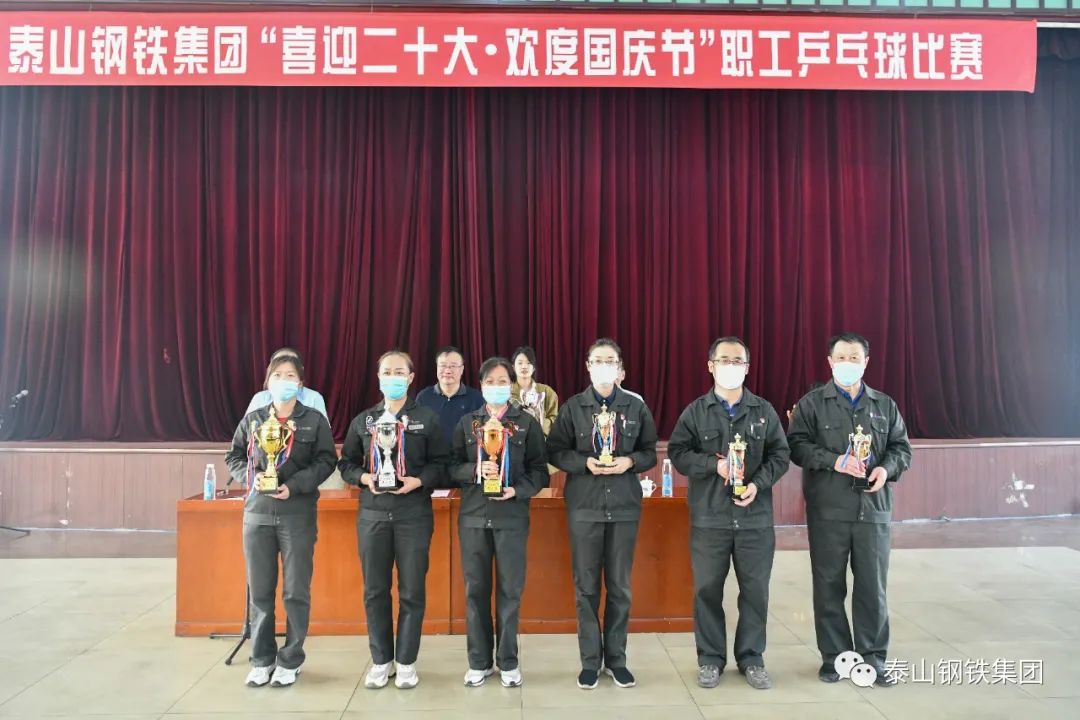据了解,本次“喜迎二十大·欢度国庆节”职工乒乓球比赛共有18个代表队、124名乒乓健儿参加比赛。经过两天紧张刺激的比赛后,自动化部职工陈志旋取得男单冠军,热电厂职工亓增俊获得女单冠军。自动化部获得男团冠军,热电公司获得女团冠军。保卫部、新材料事业部、品质保障部、机关党总支机关第三党支部、泰嘉新材料科技有限公司、焦化公司、冶金机械厂、实业公司、机关党总支机关第二党支部获得优秀组织奖。冷轧部获得道德风尚奖。