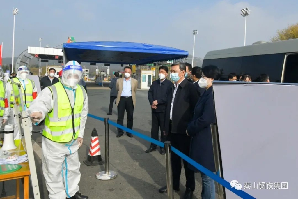 11月24日,济南市委常委、副市长孙斌带队到泰山钢铁集团调研指导防疫工作。莱芜区委副书记、区长李光辉,区委常委、副区长付华等区领导陪同调研。集团董事长、党委书记王永胜汇报了集团防疫工作情况。