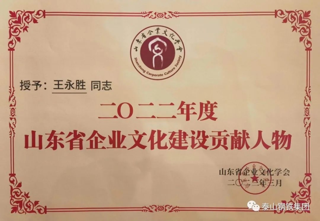 3月26日,山东省欧宝app登录入口建设发展大会在临沂召开。会上表彰了2022年度山东省欧宝app登录入口建设先进单位和个人。其中,泰山钢铁集团被授予“2022年度山东省欧宝app登录入口建设先进单位”荣誉称号,集团党委书记、董事长王永胜获得“2022年度山东省欧宝app登录入口建设贡献人物”荣誉称号。