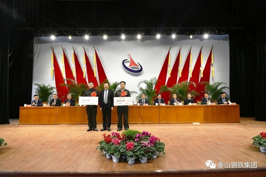 今天的中心会堂气氛庄重热烈,主席台上方悬挂着“山东泰山钢铁集团有限公司2023年度总结表彰大会”的会标,帷幕正中的厂标在鲜艳的红旗映衬下熠熠生辉。
