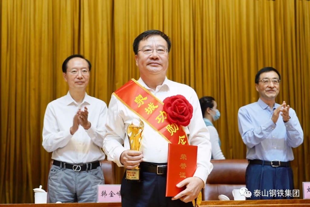 7月25日,济南市委市政府采用“主会场+分会场”的方式,召开了优秀企业和优秀企业家表彰大会,公布了泉城优秀企业代表、泉城功勋企业家、泉城杰出企业家代表、泉城优秀企业家代表名单,并分别进行了颁奖。王董事长上台领受了“泉城功勋企业家”奖杯和荣誉证书。