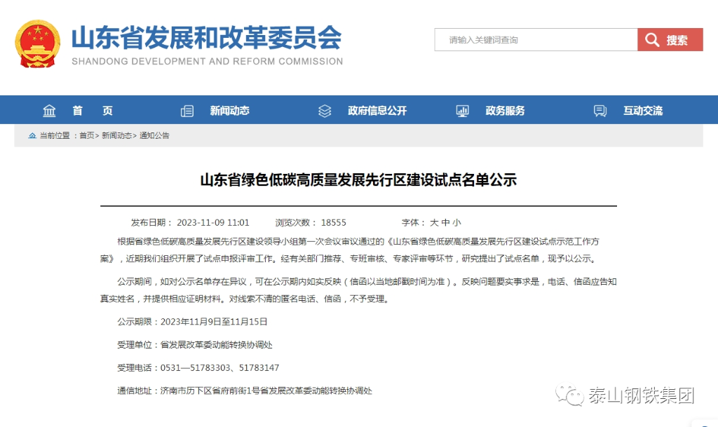 11月9日,山东省发展和改革委员会官网公布了山东省绿色低碳高质量发展先行区建设试点名单。其中,集团公司上榜企业试点名单。