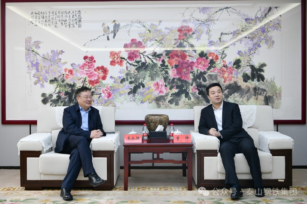 2月28日,国网莱芜供电公司党委书记曾帅带队来到泰山钢铁集团,征求全国人大代表,集团董事长、党委书记王永胜对电力供应的意见和建议。在集团办公楼贵宾室,王董事长与曾帅一行进行了座谈。