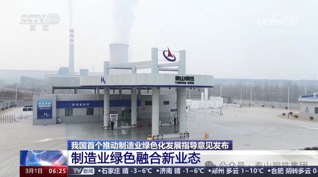 3月1日,央视《朝闻天下》以《我国首个推动制造业绿色化发展指导意见发布 制造业绿色融合新业态》为题,报道了泰山钢铁绿电轧钢融合发展,力促节能减排,助力钢铁行业绿色转型、高质量发展的先进经验。