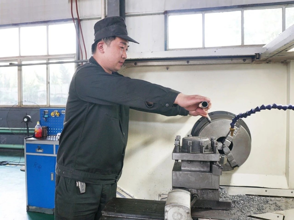 入职前,他曾有过一段机加工质检员的工作经历,对机床运作流程比较熟悉,操作机床时也很快上手。但正当他准备大展拳脚时,一次实际操作却给他敲响了警钟。他首次车削轧辊时,因操作失误将轧辊圆弧过渡处车削过深,“那一刻我才明白,理论知识和实际操作的差距有多大,必须沉下心继续练。”栾亮说。于是,他开始刻苦地钻研技术,利用废料反复练习,逐渐掌握了机床加工的操作技巧。