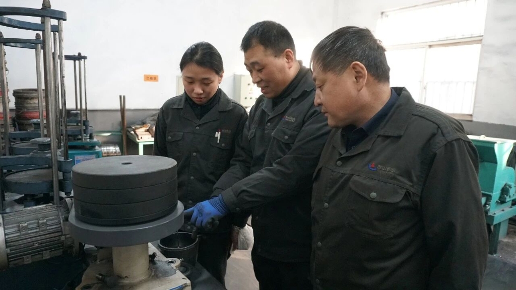 为了提高制样质量和效率,他们多次开展技术攻关。生石灰等辅料容易粘在制样钵体上,清理费时费力,残留还会污染后续样品。董伟利用业余时间上网查阅资料,寻找解决方法。当了解到无水乙醇可能有效时,他马上组织班员进行实验验证。